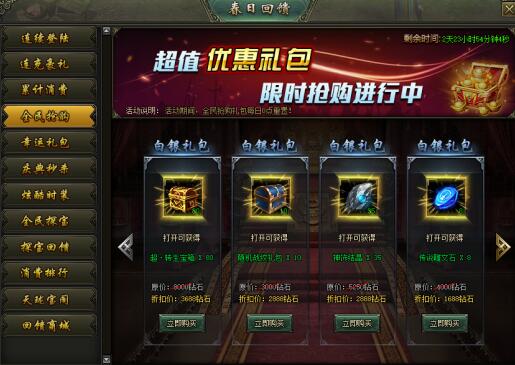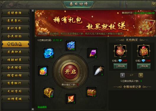 活动说明:活动期间,购买礼包获得抽奖次数,购买礼包次数和抽奖次数每日0点重置。