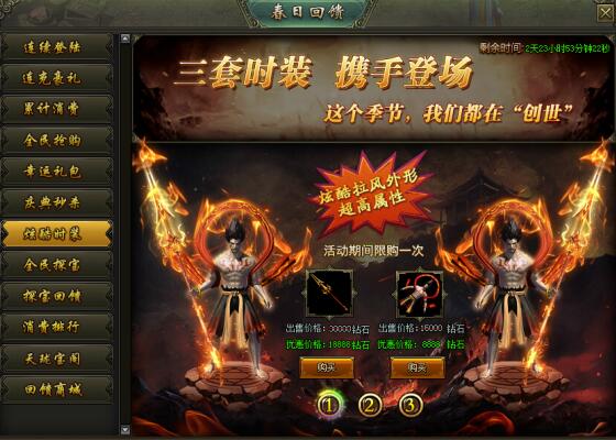 活动说明:活动期间,绝版时装限时出售,炫酷拉风外型、超高属性都在这里!