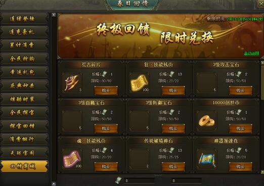 活动说明:活动期间,可使用充值回馈卷和消费回馈卷兑换大量奖励
