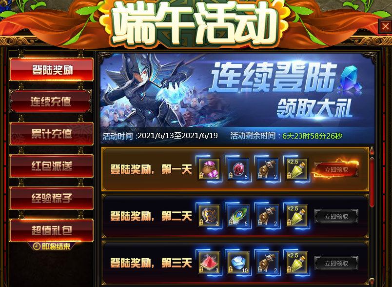 活动内容:活动时间内,玩家每天登陆游戏即可获得丰厚奖励。