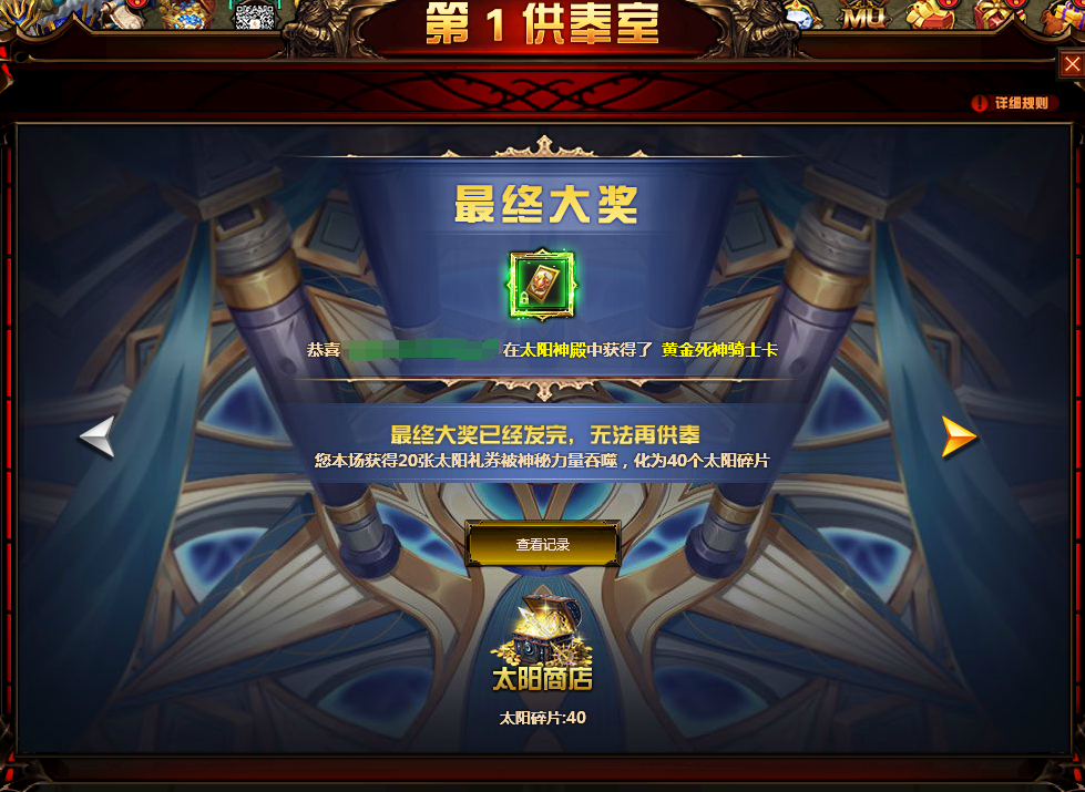 3.每日晚10点会结束供奉,并根据太阳礼券获取情况抽取最终奖励