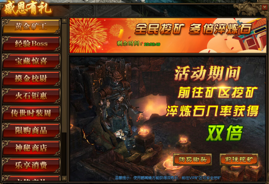 2.注意:必须使用“鹤嘴锄”才可获得“淬炼石”,在VIP矿区可安全挖矿;