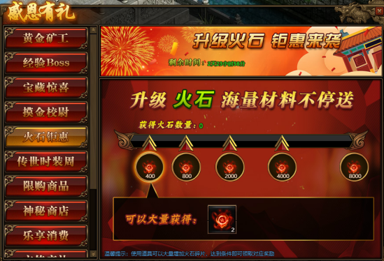 1.活动期间,玩家获得火石碎片数量,达到条件可领取对应火石碎片奖励。