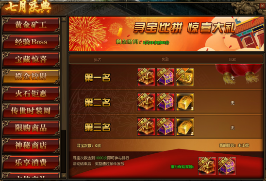 1.活动期间,玩家寻宝次数达到1000次即可参与到摸金校尉排行榜中