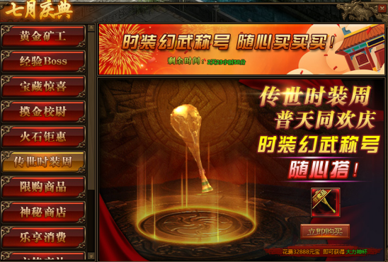 1.活动期间,玩家可在活动面板购买限购商品;(可翻页)