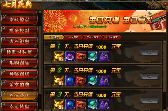 2.连续充值达到3天,奖励翻倍领,更可领取暗影晶石、地狱晶石、觉醒晶石等贵重物品