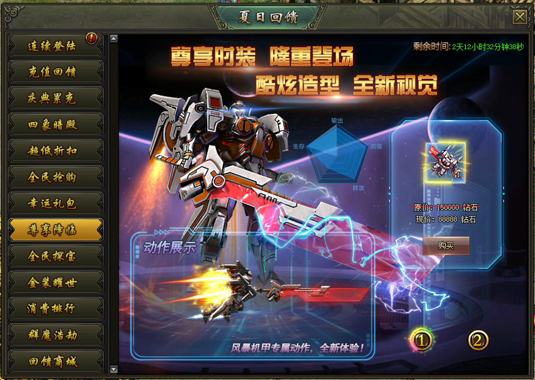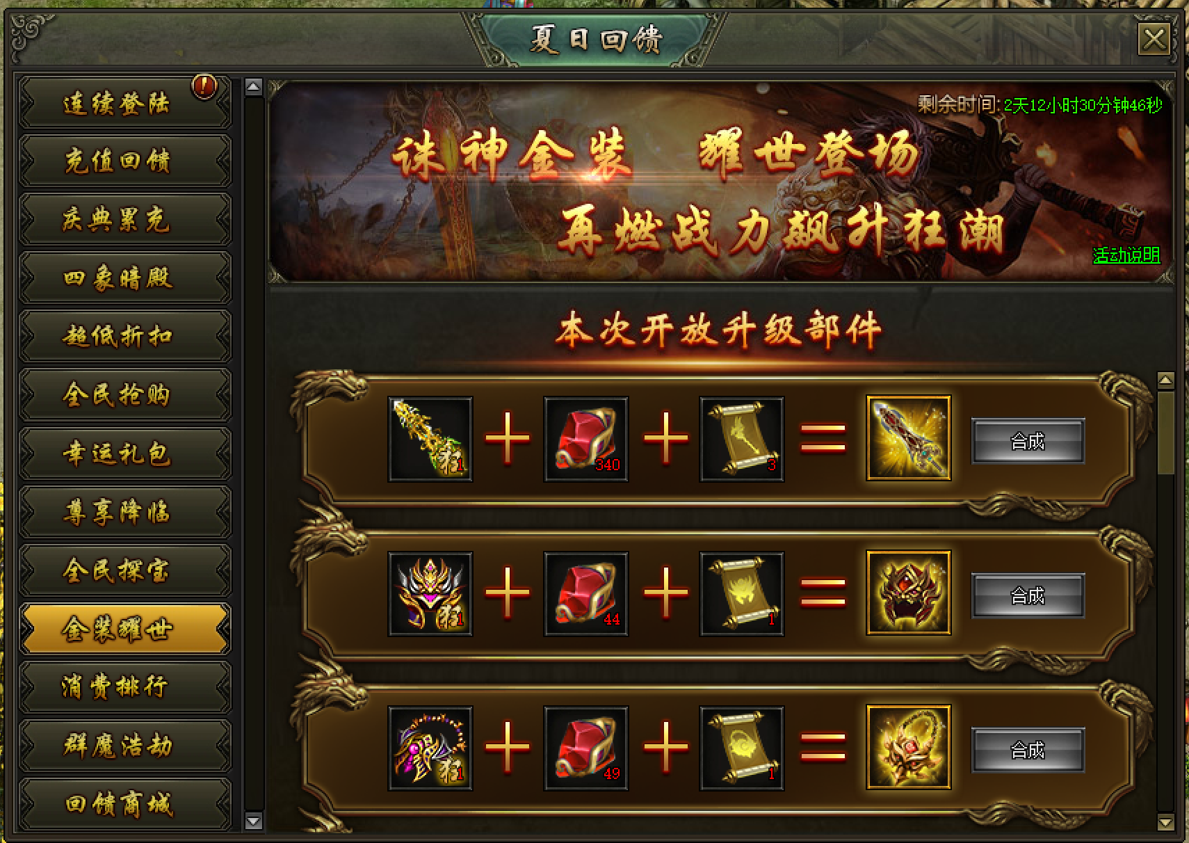 活动说明:活动期间,诛神金装耀世登场,穿戴之后战力飙升。