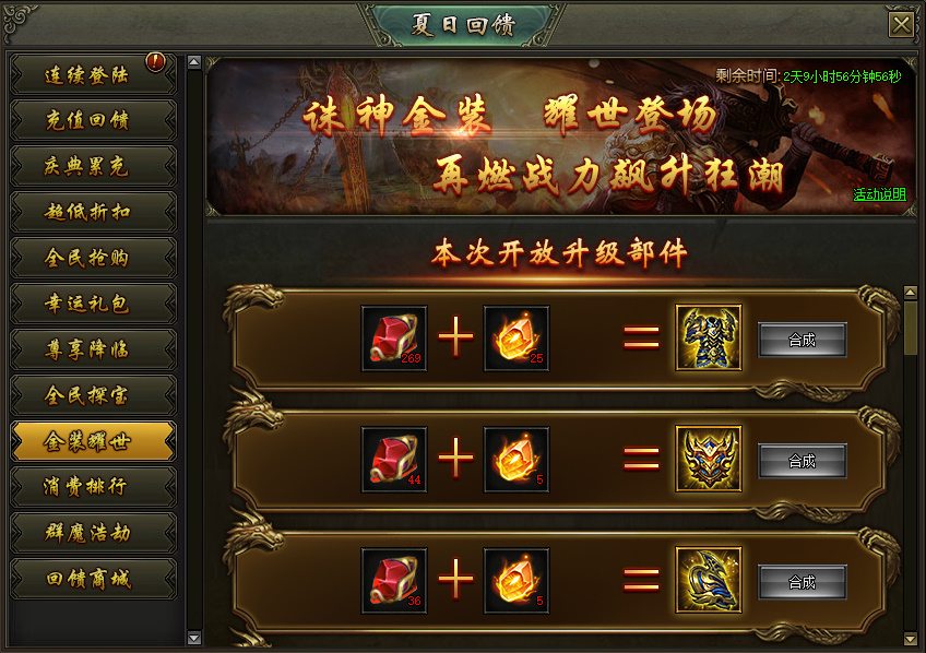 活动说明:活动期间,诛神金装耀世登场,穿戴之后战力飙升。