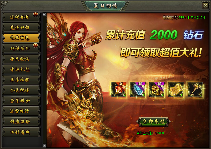活动说明:活动期间,累计充值指定额度即可领取超值大礼!