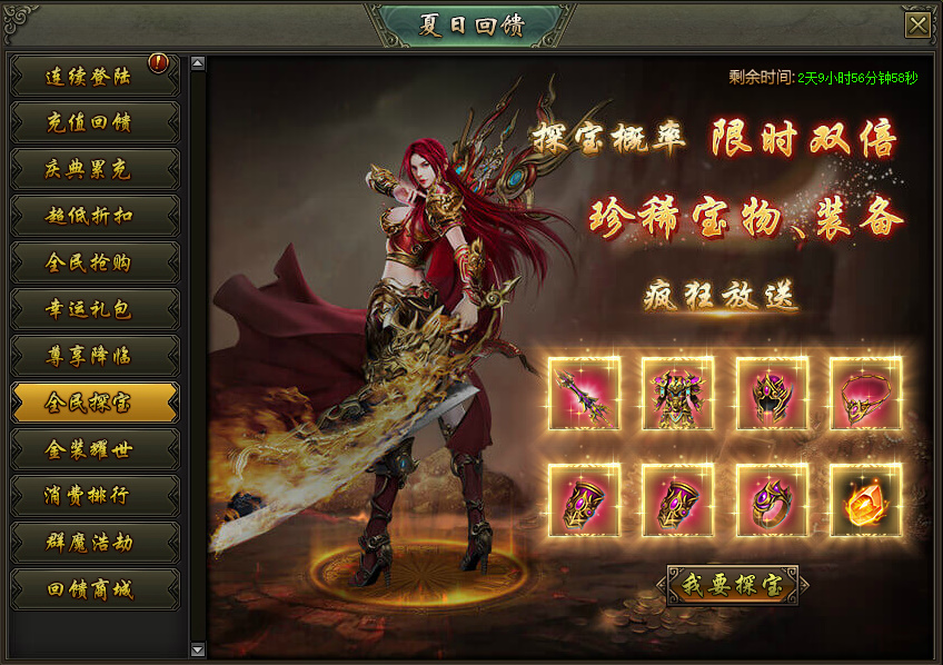 活动说明:活动期间,龙之宝藏产出圣装的概率限时翻倍,极品圣装、珍稀宝物大放送!