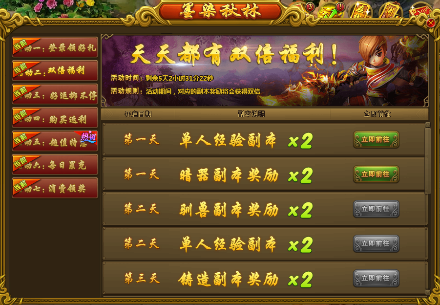 活动规则:活动期间,对应的副本奖励将会获得双倍。