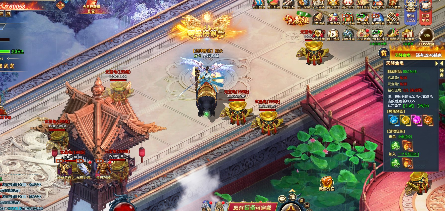 击败金龟后可拾取红包,元宝,进一步提升自身属性战力。