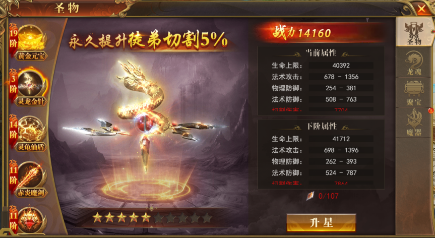 在线即可领取,激活永久提升徒弟切割。消耗圣物碎片可升阶