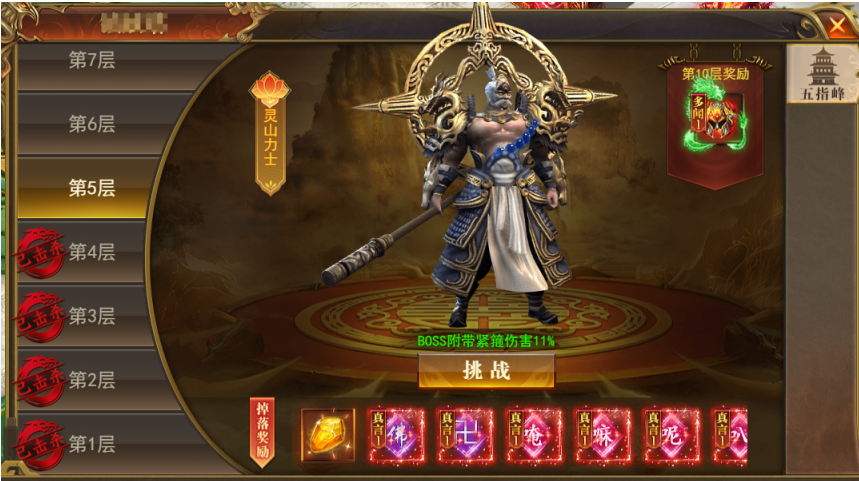 主要掉落真言装备及材料,每通关10层可领取首通大奖,更有天王附神圣装等你来拿
