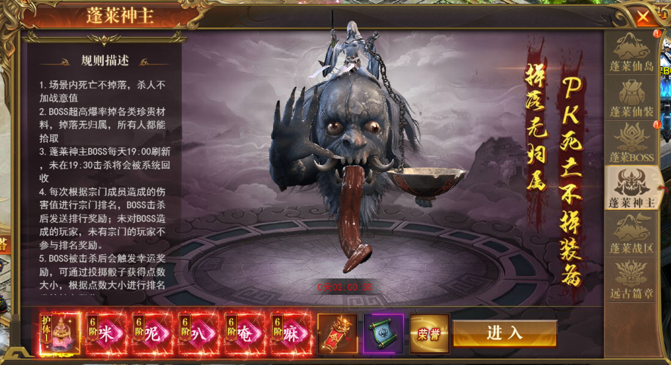 Boss被击杀后会触发幸运奖励,可通关投掷骰子获得点数大小,根据点数进行排行发放神主积分;