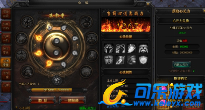 当玩家的英雄等级达到91级以上,可通过消耗经验和金币,或购买心元丹来兑换“心元力“。通过消耗一定“心元力”将当前心法顺时针依次激活至10级。