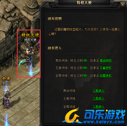 已激活“至尊特权”且角色转生等级达到“5转”的玩家可进入“至尊领域”
