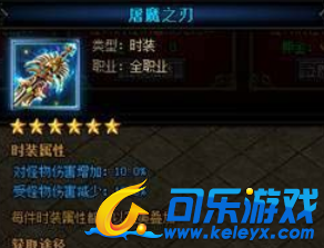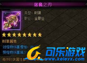 三件神兵:蓝色时装(888元宝,增加对怪物伤害10%,受怪物伤害减少10%)