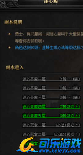 迷心圣殿五层进入条件:人物转生等级≥9转