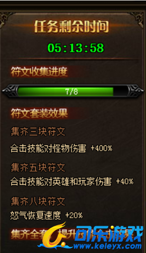 蓝月传奇中随着英雄系统带来的合击技能很大程度的提升了玩家瞬间的伤害输出程度,要想最大程度的提升合击技能的伤害输出,玩家必须要收集到一整套完整的套装符文,因为当玩家集齐整套的符文套装后,合击技能会很额外的属性加成,举个列子来说,当玩家集齐一套70级的符文有什么样的收益,当角色收集3块70级符文合击技能对怪物的伤害增加200%,当玩家收集55快70级符文后,合击技能对英雄和玩家伤害提升20%,当玩家收集齐一套8块70级符文,玩家的怒气恢复速度更可以提升10%,依此类推,符文套装的等级转数越高,属性提什越多,大家可能会问符文怎么快速获得呢,当玩家达到一定等级后,系统会自动开放限时任务,每组限时任务有八个,对应了没一个符文块,玩家只要完成了这些限时任务,便可以快速收集到整套的符文套装啦,不过值得注意的是要在限定的时间内完成哦,若没有完成则会更换到下一组任务时间中~