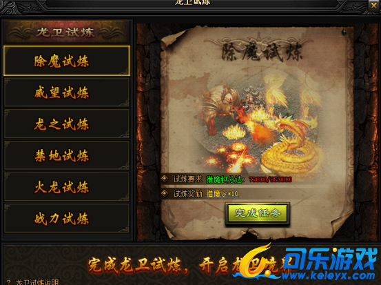 完结可根据要求完成各项试炼,只有通过全部试炼方可开启龙卫系统,获取龙卫之威!