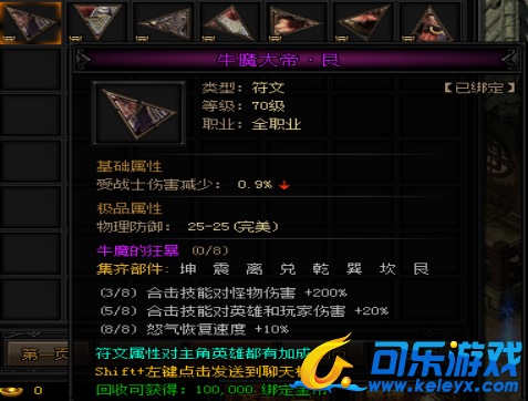 集齐五块符文 合击技能对英雄和玩家伤害+20%