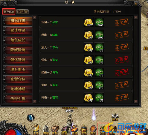 通过击杀怪物、通关副本、升级装备、参与活动等,均可得到大量的成就积分。