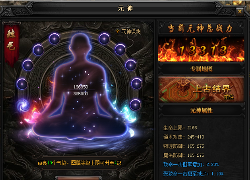 蓝月传奇游戏中提升元神等级不仅能提升人物基础属性,还能大幅提升致命一击伤害力,从而快速提升玩家觉得战斗力。