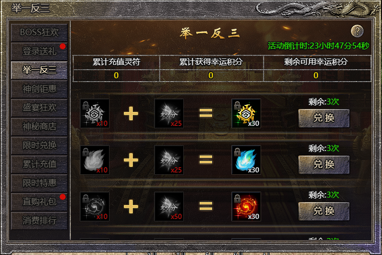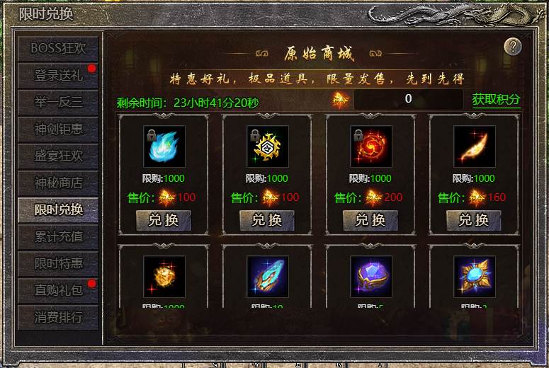 2.在神秘商店每消费1灵符可获得1积分,积分可在限时兑换中兑换物品;
