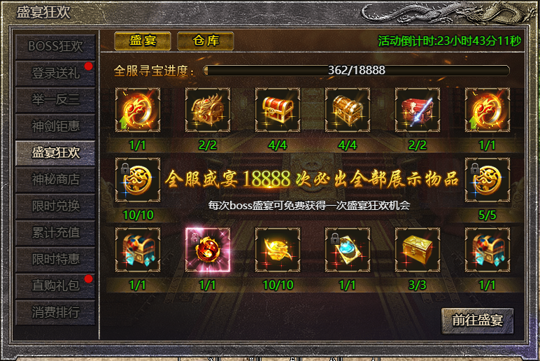 2.达到全服盛宴进度,将必会获得一份展示物品哦!
