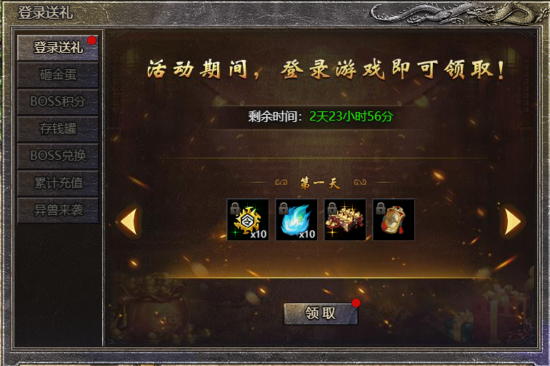 2.注意:当天未登录,则无法领取;