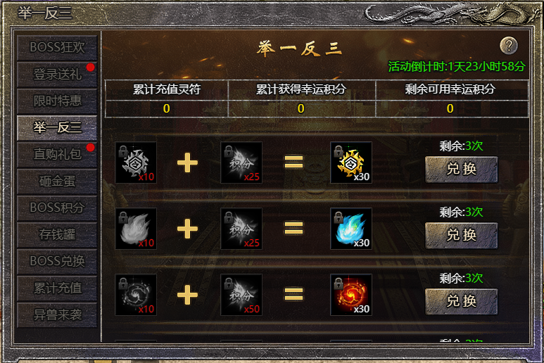 2.消耗积分可将物品3倍兑换