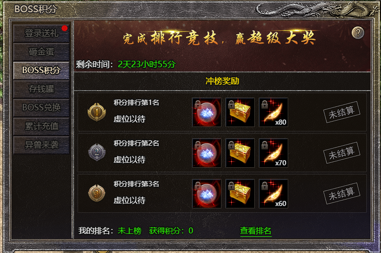 2.玩家boss积分累计达到指定数量即可参与冲榜