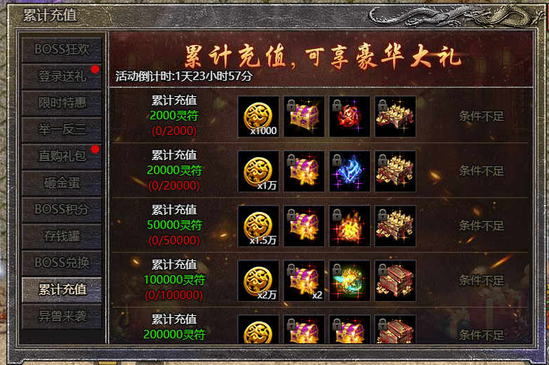 1.活动期间,每充值一定的灵符可领取一份奖励;