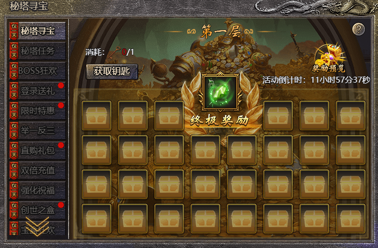 2.秘塔分为7层,每层都有一个终极奖励,抽到终极奖励可前往下一层;