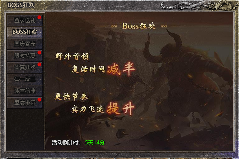 1.活动期间在参与盛宴boss,每次盛宴都有可能获得展示的物品奖励