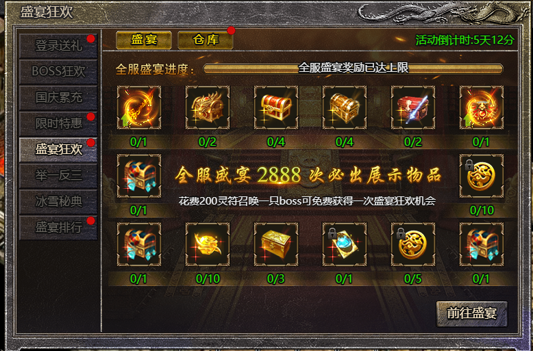 2.达到全服盛宴进度,将必会获得一份展示物品哦!