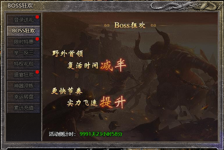 1.活动期间在参与盛宴boss,每次盛宴都有可能获得展示的物品奖励