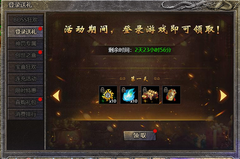 2.注意:当天未登录,则无法领取;