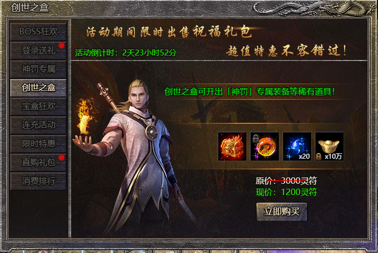 1.活动期间,限时出售创世之盒礼包;