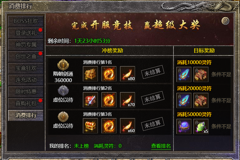 1.活动期间,玩家消耗灵符数量累计达到指定数量即可参与冲榜;