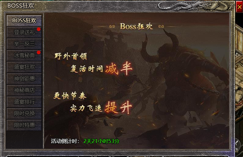 1.活动期间在参与盛宴boss,每次盛宴都有可能获得展示的物品奖励