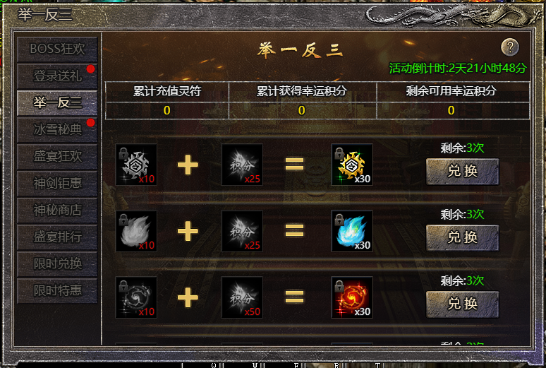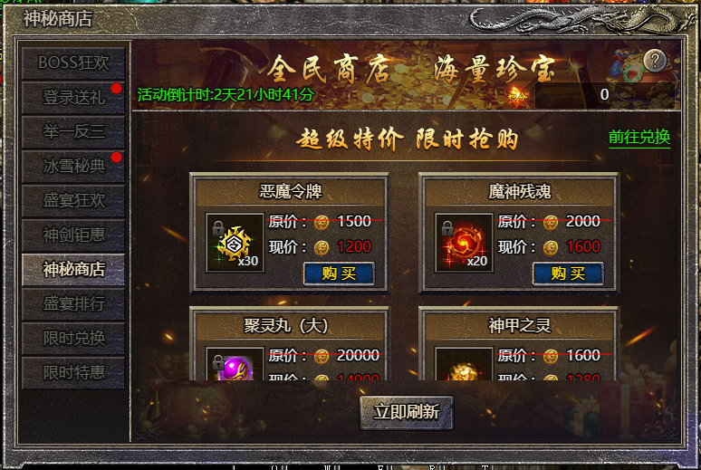 2.在神秘商店每消费1灵符可获得1积分,积分可在限时兑换中兑换物品;