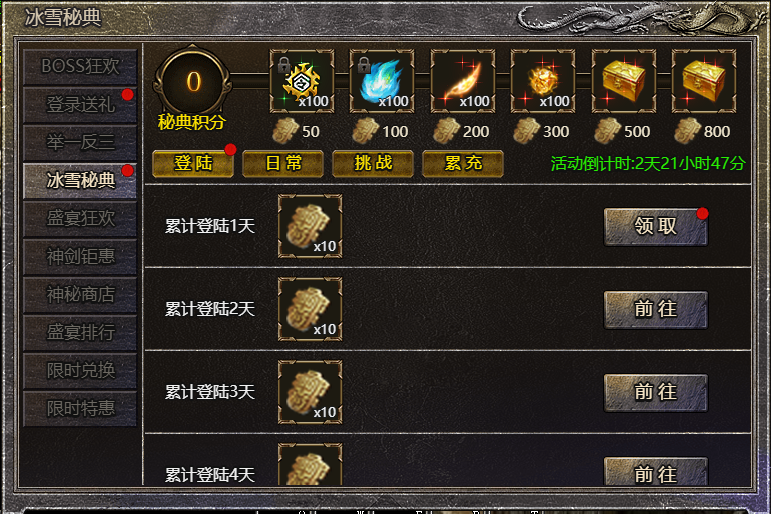 1.活动期间完成冰雪秘典里的各个目标,即可以获得对应的秘典积分