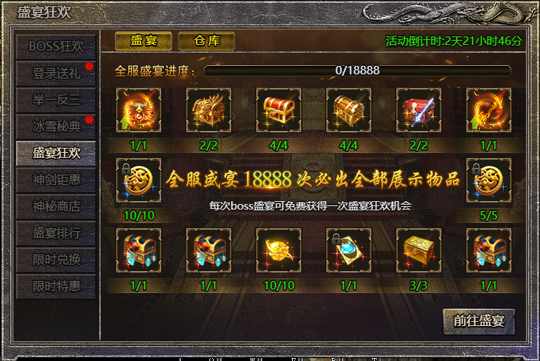 2.达到全服盛宴进度,将必会获得一份展示物品哦!