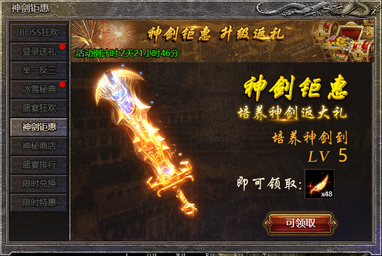 2.活动领取的神剑之魂限时3天,请尽快使用哦