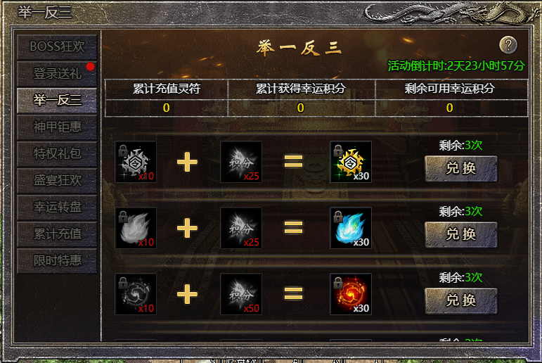2.消耗积分可将物品3倍兑换