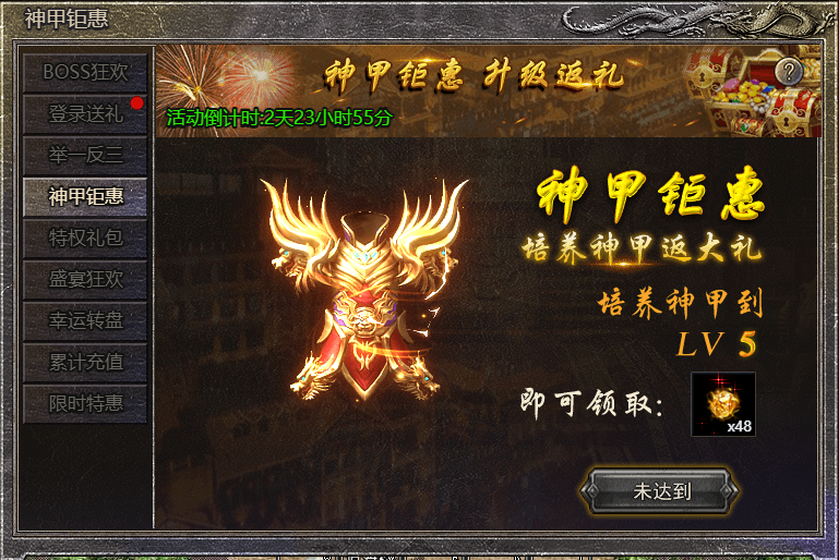 1.活动期间,神甲等级达到指定等级即可领取神甲之灵;