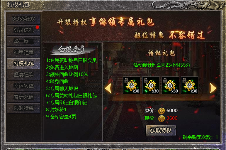活动五、特权礼包
