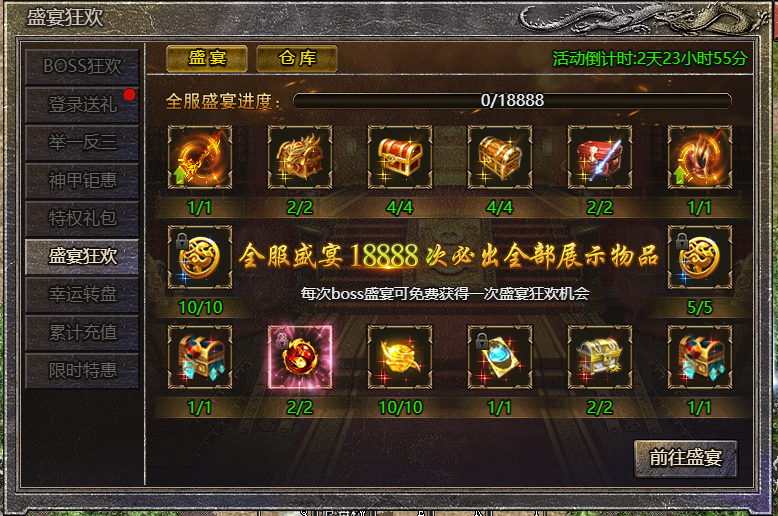 2.达到全服盛宴进度,将必会获得一份展示物品哦!